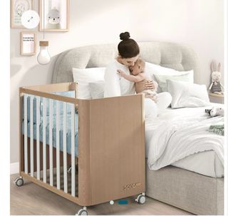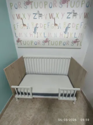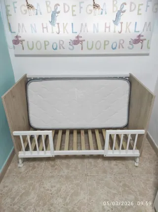 - LATERAL EXTRAÍBLE sin llave. En la 4a y 5a foto se ve sin lateral pero se incluye. - SOMIER LÁMINAS MADERA con 6 posiciones de altura. - RUEDAS CON FRENO y rodadura. - DE MADERA DE HAYA y cabeceros en DM chapado en haya natural. - CERTIFICADA COMO CUNA Homologación Europea UNE - Incluye COLCHÓN RECOMENDADO AIR FOAM COTINFANT 117X57X10cm. - VARIOS USOS según niño crece: colecho, cuna y cama montessori. - Precio original: cuna 574€ y colchón 80€ - Posibilidad de comprar: *2 juegos completos de sábana bajera + funda nórdica + almohada de Burrito Blanco *1 tencel *1 edredón con relleno de Mon Petit Nicolas - Todo como nuevo