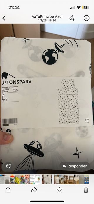 NUEVO, sin desembalar. Se vende porque ya no le gusta al peque y no tenemos el ticket. Funda nórdica y funda de almohada con diseño espacial. - Diseño: AFTONSPARV - Medidas funda nórdica: 150x200 cm - Medidas funda almohada: 50x60 cm - Diseño de Marta Krupińska