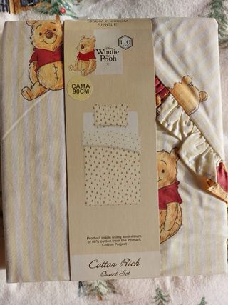 Funda nórdica con estampado de Winnie The Pooh para cama de 90 cm. Incluye funda de almohada. - Diseño alegre con el personaje de Disney. - Tejido suave y cómodo. - Ideal para habitaciones infantiles.