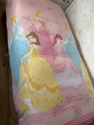 Funda nórdica con estampado de Princesas Disney para cama individual + funda de almohada. Tengo otra muy parecida en mi perfil. - Diseño con varias princesas. - Tonos rosas y azules. - reversible(ver fotos) con distinto estampado por cada lado. -145x235 cm
