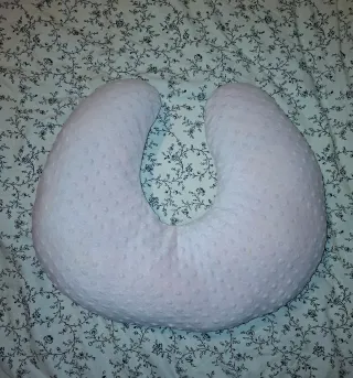 Almohada de lactancia en color rosa con un diseño texturizado. - Textura suave y acolchada. - Forma ergonómica para mayor comodidad. - Funda con cremallera invisible y lavable.