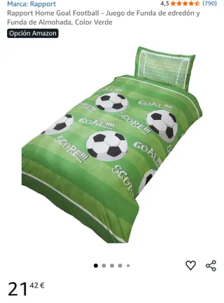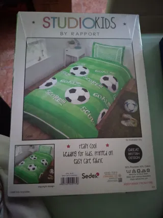 Juego de funda nórdica y funda de almohada con diseño de fútbol. El estampado incluye balones y la palabra Goal. - Color verde. - Diseño de rayas y balones de fútbol.