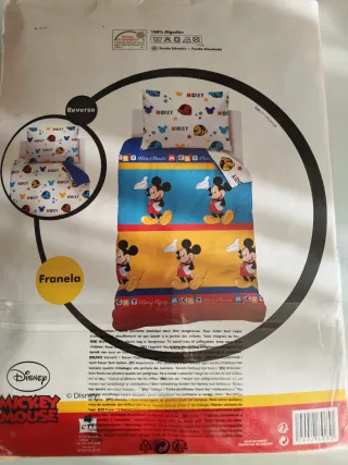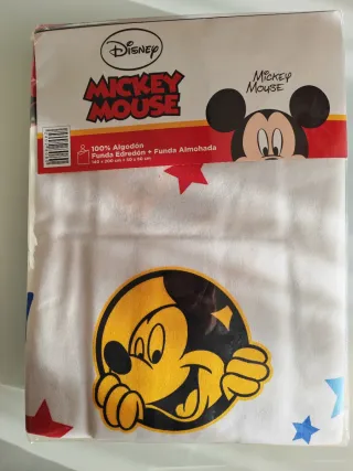 Sin estrenar. Funda nórdica de algodón con diseño de Mickey Mouse. - Material: 100% Algodón. - Incluye funda de edredón y funda de almohada. - Medidas: 140 x 200 cm (edredón) y 50 x 80 cm (almohada).
