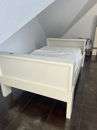 Cama infantil blanca con somier y colchón