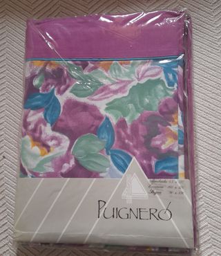 Juego de sábanas de la marca Puigneró con un bonito estampado floral. - Tamaño: 90 cm. - Incluye funda de almohada (45 x 110 cm). - Encimera (160 x 270 cm). - Bajera (90 x 190 cm).