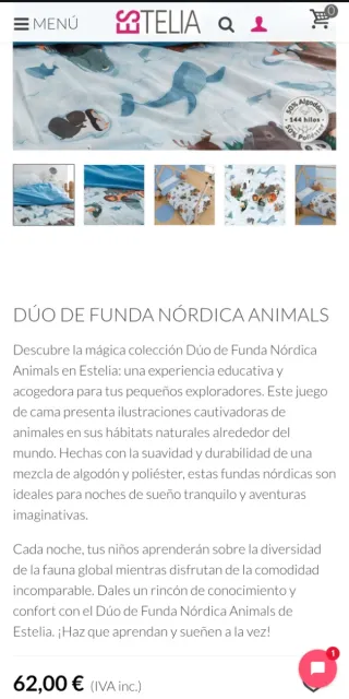 PVP: 62€ Dúo de funda nórdica y funda de almohada de la colección "Animals" de Estelia. Es una experiencia educativa y acogedora para niños, con ilustraciones cautivadoras de animales en sus hábitats naturales. Están hechas con una mezcla suave y duradera de 50% algodón y 50% poliéster (144 hilos), ideal para un sueño tranquilo y aventuras imaginativas. El diseño es alegre, lleno de color y representa los continentes con animales. Más en mi perfil.