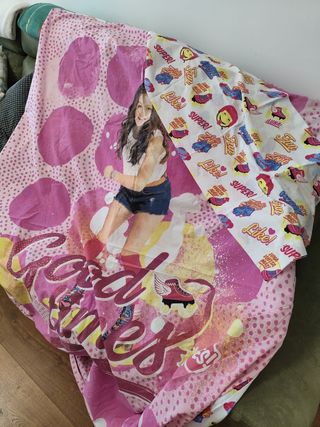 Preciosa funda nórdica de Soy Luna, en tonos rosas y con estampado de la protagonista. Ideal para fans de la serie. Se puede usar en ambas caras - Incluye funda nórdica y funda de almohada. - Diseño con lunares y escenas de Soy Luna. - Perfecto estado, sin desperfectos.