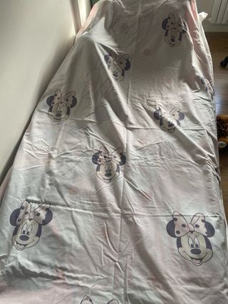 Funda nórdica con un alegre diseño de Minnie Mouse. Con funda de almohada y bolsa de transporte. Medidas 130x200