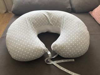 Almohada de lactancia con un diseño de rayas verticales en tonos beige y blanco. Su forma ergonómica está pensada para ofrecer comodidad durante la lactancia. - Diseño a rayas. - Color beige y blanco. Almohada para lactancia y para recostar al bebé Esta nueva, no se llegó a usar. Lleva funda con cremallera así que es lavable. Imprescindible tanto para darle el pecho como el biberón ya que reposa el bebé en la almohada y tus brazos a cada lado sintiendo una gran sensación de relajación