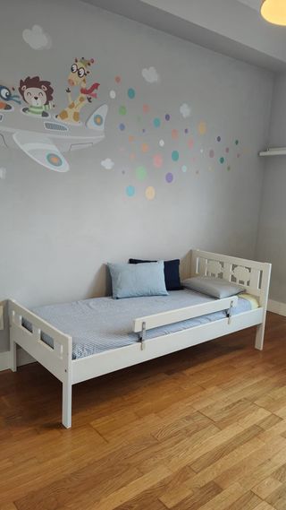 Cama infantil extensible, perfecta para acompañar el crecimiento de los más pequeños. Su diseño se adapta a diferentes etapas. - Medidas: 80x200 cm. Se incluye colchón también extensible, funda protectora de colchón, sábana bajera en color blanco y almohada sin estrenar.