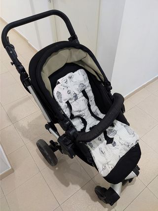 Cochecito Jané Crosswalk y capazo plegable Concord. Le hemos cambiado la funda del asa. El carrito lo hemos usado bastante pero le queda mucha vida, el capazo está casi sin usar. Incluye funda de lluvia e instrucciones de las dos cosas.