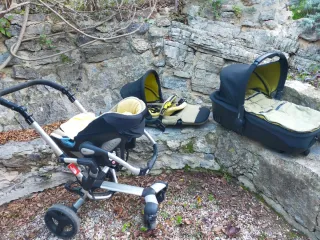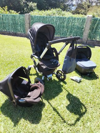 Compuesto por carro, capazo y maxicosi. Todo está en muy buenas condiciones. No falta nada (funda para lluvia etc) Se incluye saco polar de invierno. Es un conjunto de muy buena calidad que llegó a costar mas de 1000€. Robusto, plegable y compacto, con muchas posiciones. La silla llega a alcanzar gran tamaño por lo que no es necesario cambio de silla temprano cuando el bebé crezca. No se envía