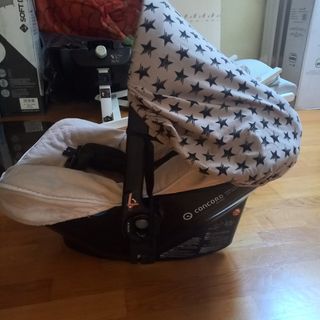 Combo concord neo en muy buen estado. Compuesto por silla, capazo plegable, grupo 0. regalo fundas para la lluvia de silla y capazo, manoplas, 2 bolsas a juego, quita sol de tela, mosquitera, funda de verano y saco de invierno para el grupo 0.