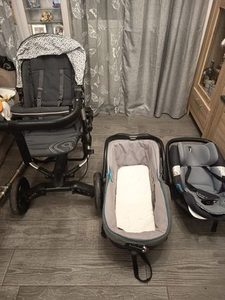 Vendo silla de paseo, maxicosi y capazo. Todo fue comprado nuevo y ha sido tratado con mucho cuidado. El capazo es rígido y está homologado para transporte en el coche.Tiene sistemas de fijación bilaterales a través de los cinturones de seguridad y cinturones internos para el bebé. La silla de paseo tiene una funda protectora solar para las piernas. Incluye protector para la lluvia. Se regalan varias sábanas y fundas para el capazo con las ranuras para los cinturones.