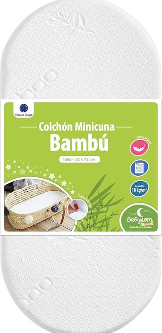 Colchón para capazo de bebé de la marca Babysom, con funda de bambú. - Medidas: 32 x 72 cm. - Funda de bambú suave al tacto. - Densidad: 18 kg/m3. - Funda extraíble para facilitar el lavado (lavable a 30°C). Babysom - Colchón Capazo bebé - Funda de Bambú - 72 x 32 cm | Transpirable | Antiahogo | Altura 4 cm | Desenfundable Colchón 72 x 32 cm : ideal para capazo, minicuna y cochecito Colchón desenfundable : práctico e higiénico, la funda se lava a máquina a 30° Funda de bambú : tejido muy suave y transpirable que ofrece al bebé un frescor óptimo para un sueño tranquilo y sereno Núcleo de colchón de espuma 18 kg/m3 : confort adapta