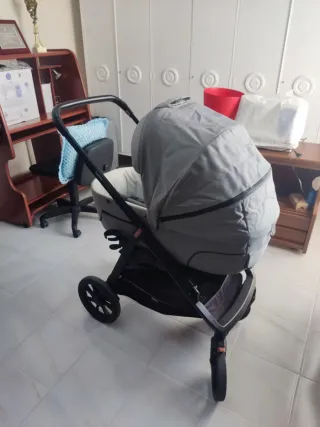 Carrito de bebé convertible 2 en 1, ideal para los primeros años del bebé. Incluye capazo y silla. -Buen estado - Capazo espacioso y confortable. - Silla de paseo reclinable. - Estructura resistente y ligera. - Ruedas todoterreno. - Soporta 22 kg ( 4 años ) - Ruedas grandes con suspensión y freno central. - Varias posiciones requinable 3 posiciones. - Cubre pies y cesta inferior. - Funda impermeable para lluvia. - Precio negociable y entrega en mano ver sin compromiso