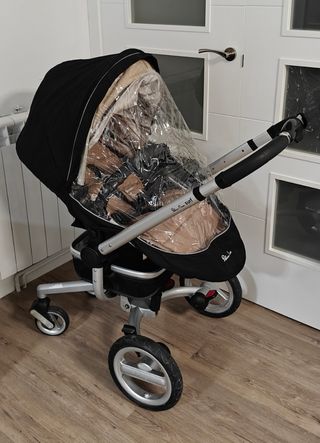 En muy buen estado! Viene con capazo, silla y maxicosi. También incluyo el adaptador con isofix del Maxicosi para el coche, funda de lluvia para la silla y cubrepies, la bolsa y el colchón original para el capazo. Contactar para más fotos e información.