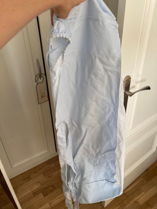 Vestidura para capazo o cochecito de bebé universal de la marca Rosy Fuentes. Perfecta para entretiempo. Incluye: - Funda cabecita/cojín - Bajera rayas azules y blancas - Funda entretiempo - Encimera/colcha tono azul y funda algodón a rayas azules y blancas y motivo barquito. - REGALO: dos sábanas bajeras elásticas para capazo: una impermeable y otra de algodón (no impermeable) La funda se encuentra en buen estado, sin embargo la cinta está un poco dada de sí por lo que no queda ceñida al cochecito.