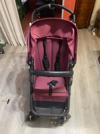 Carro Bugaboo Camaleón en color burdeos. - Chasis negro. - Capazo y silla. - Ruedas delanteras giratorias. - Cesta de almacenamiento inferior. - Plástico para la lluvia. - Otra funda en negro.