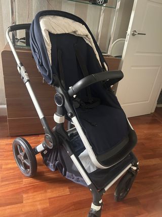Carro de bebé de la marca Silver Cross, ideal para paseos cómodos. - Diseño moderno y funcional. - Asiento acolchado. - Capota ajustable. - Arnés de seguridad de 5 puntos. Con marcas de uso, aparte de la silla, se regala funda de lucia y capazo para bebe