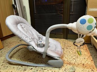 Hamaca Chicco Rhythm & Sound en perfecto estado, ideal desde recién nacido hasta aprox. 9 kg. Incluye balanceo automático lateral, varias melodías relajantes y sonidos de la naturaleza para calmar al bebé, respaldo reclinable en 2 posiciones, arnés de seguridad y funda desenfundable y lavable. Funciona con pilas o cable USB, es cómoda, segura y fácil de plegar para guardar o transportar Esta nuevo casi sin usar, tiene un defecto por el arnes que esta del revés, pero se puede usar perfectamente(ver foto) sin afectar nada en la seguridad. De ahi el precio más bajo. Precio original comprado a 100€