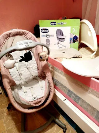🪶 Hamaca / Mecedora Chicco – Muy cómoda y práctica Vendo hamaca balancín Chicco para bebé. ✅ Muy cómoda y estable, perfecta para que el bebé descanse o juegue. ✅ Con arnés de seguridad para mayor tranquilidad. ✅ Respaldo reclinable y base con opción de balancín o fija. ✅ Fundas lavables. ⚠️ Presenta signos normales de uso, pero está en buen estado y lista para usar. 📍 Recogida en Arroyo de la Encomienda (Valladolid). 💰 Precio: 30 €. Ideal para tener al bebé cómodo y seguro sin gastar en una nueva.