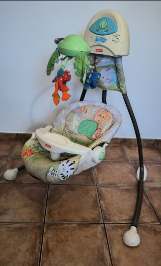 Columpio Fisher-Price eléctrico (a pilas) con diferentes intensidades de balanceo, vibración y varias melodías músicales. Funda extraíble y lavable. Plegable. En perfecto estado.