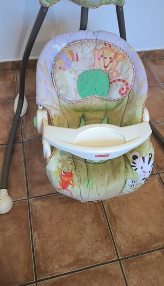 hamaca fisher price, evolutiva hasta las 4 años. se puede quitar la funda y lavarla de una meneea muy comoda. tiene un boton para hacer que la hamaquita tiemble y dar sensación de confort al bebé. se pueden colgar juguetes. tiene una opcion para dejarla fija o se balance con el propio movimiento del niño. Es muy cómoda. se entregará recien limpia