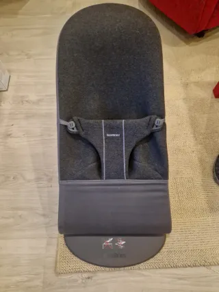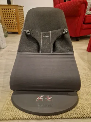 Hamaca Babybjörn en color gris, en buen estado. Es perfecta para que el bebé se relaje y se sienta cómodo. - Tejido acolchado y suave. - Estructura ligera y fácil de plegar. - Base estable y segura. - 2 fundas