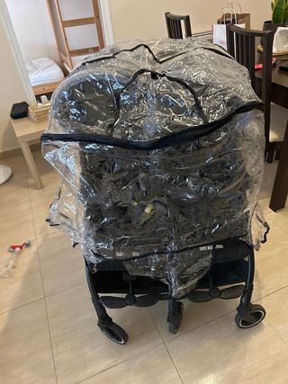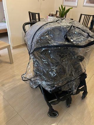 Funda impermeable para proteger la silla de paseo de la lluvia y el viento. Es un accesorio práctico para mantener al bebé seco y cómodo. - Malla de ventilación en los laterales. -Leves marcas apenas perceptibles en el plástico.