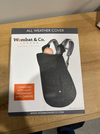 Funda para porteo de bebé Wombat & Co. London, ideal para proteger del frío y la lluvia. - Cobertor All Weather Cover. - Compatible con la mayoría de portabebés ergonómicos. - Diseño en color negro. - Tejido resistente a la intemperie.
