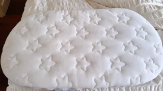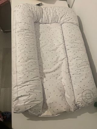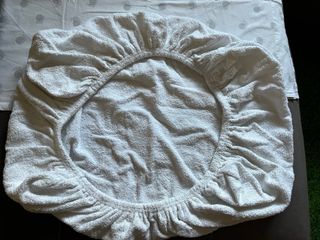 Funda impermeable para minicuna, protege el colchón. - Material suave y transpirable. - Diseño acolchado con rombos. - Borde elástico para un ajuste seguro. Nueva, no usada.