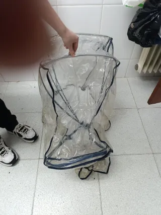 Funda impermeable para proteger el cochecito de la lluvia y el viento. Nueva a estrenar. - Material plástico transparente.