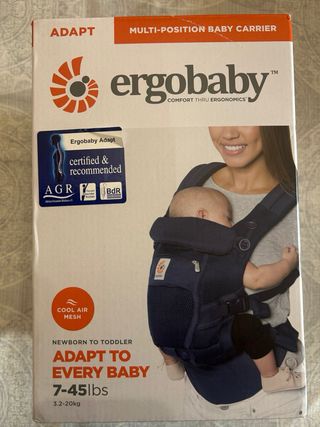 Se vende portabebés Ergobaby Adapt en color azul marino, apto desde recién nacido hasta 20 kg. Incluye funda impermeable para todo clima. - Portabebés Ergobaby Adapt. - Funda All-Weather Cover para proteger del frío y la lluvia. - Tejido Cool Air Mesh para ventilación. - Certificado y recomendado por AGR y BdR.