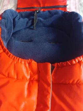 Funda acolchada para carrito de bebé en color rojo y azul. - Exterior de nylon impermeable. - Interior de forro polar suave. - Cierre con cremallera. - Muy calentita, prácticamente sin uso.