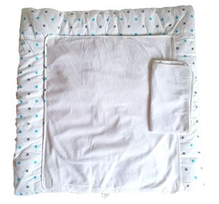 Colchón para Cambiador LULANDO con 2 Cubiertas de Rizo, Estrellas Azul y Gris, 80 x 80 cm. Nuevo sin usar. Colchón para cambiador con dos cubiertas de rizo extraíbles: ¡una ayuda insustituible en el cuidado diario de su bebé! Material superior de algodón de alta calidad (no extraíble) y relleno de fibras antialérgicas de poliéster Dos cubiertas impermeables de algodón de rizo unidas al cambiador con cuatro prácticos cierres adherente. Protección contra la humedad: 100% poliuretano Dimensiones (largo x ancho): 80x80 cm Se adapta a la mayoría de las mesas y cómodas para cambiar los pañales del bebé.
