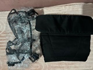 Funda impermeable y acolchada para proteger la mochila de tu bebé. - Color negro. - Con capucha. - Cierre de cordón ajustable. - Bolsillo frontal. - Sistema de correas con botones a presión.