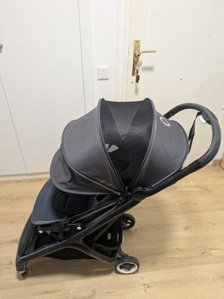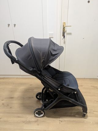 Vendo Bugaboo Butterfly de segunda mano, comprado hace unos 3 años. Carrito bastante usado, con signos visibles de desgaste propios del uso. La fijación de la rueda delantera izquierda se dobla ligeramente cuando hay mucho peso, aunque funciona correctamente. Incluyo de regalo impermeable oficial Bugaboo, funda para el asiento y bolso gris para ropa y artículos de bebé. Muy práctico para viajar, apto como equipaje de mano en avión.