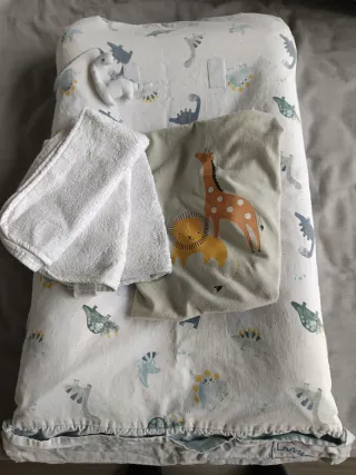 Conjunto de cuna compuesto por - 2 protectores colchón impermeables -4 juegos Sábanas de algodón -1 juego de sábanas de coralina -1 edredón nórdico -2 fundas de nórdico con preciosos diseños a juego con chichoneras y sabanas