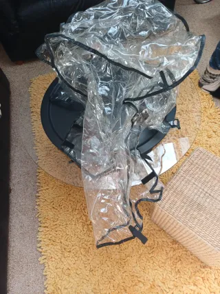 Funda protectora transparente para carrito de bebé. Mantiene al bebé seco y protegido de la intemperie. - Material de plástico transparente. - Ribete negro alrededor.