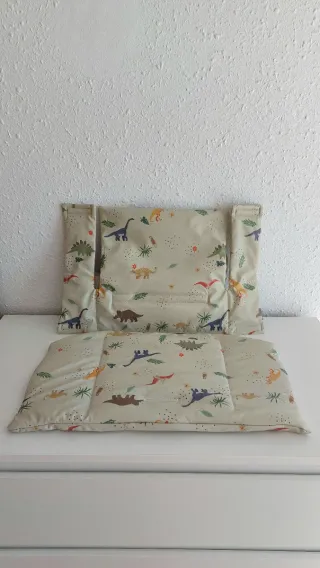 Funda para trona Stokke Tripp Trapp, nueva a estrenar. Válida para la silla con o sin accesorios (baby set, bandejas, etc..). - Diseño con dinosaurios. - Incluye cojín para asiento y respaldo. - Material impermeable, no se mancha, fácil de limpiar. - Se adapta perfectamente a la silla Tripp Trapp. stokke trona silla sillita comer alimento bebe bebé niña niño nene nena infantil recién nacido cojín cojin respaldo respaldar ikea blanco blanca color madera tripp trapp gratis nuevo nueva familia natural aprender aprendizaje crecimiento acolchada acolchado comodidad lavable impermeable tejido suave