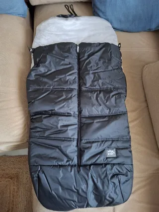 Funda saco para carrito de bebé de la marca internbaby. Es acolchada y cuenta con un forro interior suave. - Color negro y gris. - Material exterior impermeable. - Cremallera frontal. - Aberturas para el arnés.