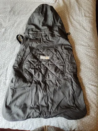 Funda para portabebés Ergobaby en color negro. Impermeable por fuera y con forro interior suave de tejido polar. Es muy cómodo y mantiene calentito y seco al bebé. Dos uso, está nuevo.