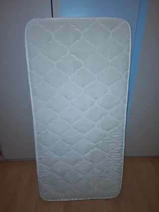 Colchón para cuna o cama infantil de Ikea. Incluye funda impermeable. - Material: Tejido poliéster, algodón, etc (ver etiqueta) - Color: Blanco. Precio original del colchón: 100€ Usado muy poco tiempo por una bebé al hacer colecho en cama y luego usar camita infantil. No tiene manchas. Muy bien conservado.