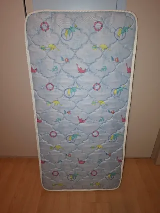 Colchón para cuna con funda protectora incluida. Tiene lado de invierno y de verano. Medidas: 120x60x14 cm precio total original 130€