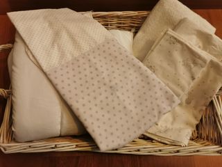 Dos conjuntos de cuna (bajera+sabana+funda de almohada) 10€ Protector de colchon de la cuna transpirable e impermeable 5€