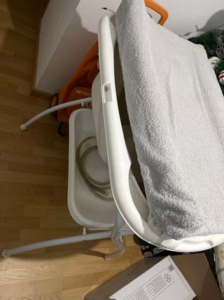 Vendo Bañera y cambiador de la marca Chicco para bebe. Cuenta con la bañera, la estructura, el cambiador y accesorios para colocar los objetos de baño del bebé. Lo tengo todo por separado, el cambiador no está puesto en la estructura de forma fija pues lo tenía sobre una cómoda cambiadora pero se puede atornillar para que quede colgando a un ladito para usar la bañera. Como nuestro en la foto, mi gato se puso las botas rascando el cambiador, es por eso que compré una funda para cubrirlo y seguir usándolo sin problema. Es por esta razón por lo que lo dejo tan barato: 20€