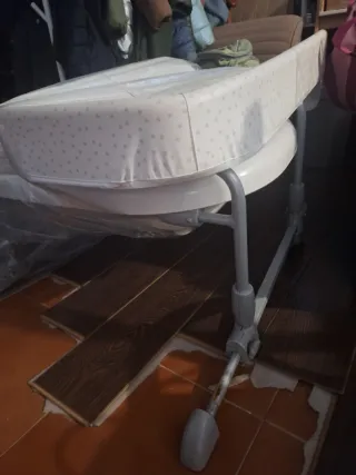 Tiene muy poco uso, pero en los laterales el plástico del cambiador se ha puesto un poco amarillento, se puede poner una funda. En las barras, sigue teniendo el plástico protector, que es lo que se ve levantado. Está en buenas condiciones.