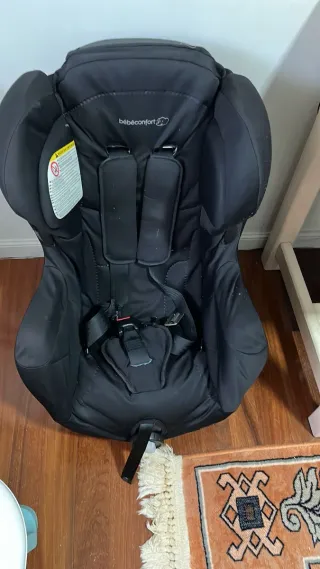 Se vende silla de coche de la marca Bébé Confort en color negro. Incluye también una bañera. - Silla de coche con arnés de seguridad. - Funda acolchada. - Marca: Bébé Confort.