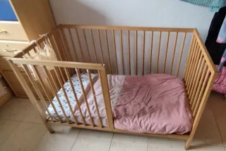 Cuna de madera con colchón